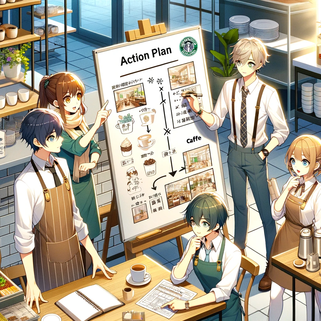 このケーススタディを通じて、カフェチェーンの店舗運営における効果的なアクションプランの立て方と実施方法について見てきました。店長が実行可能なレベルで具体的な改善策を策定し、スタッフと協力してこれらのプランを実行に移すことの重要性を強調しました。キーサクセスファクターとKPIの設定により、目標達成の進捗を明確に測定し、適宜アクションプランを調整することが可能になります。